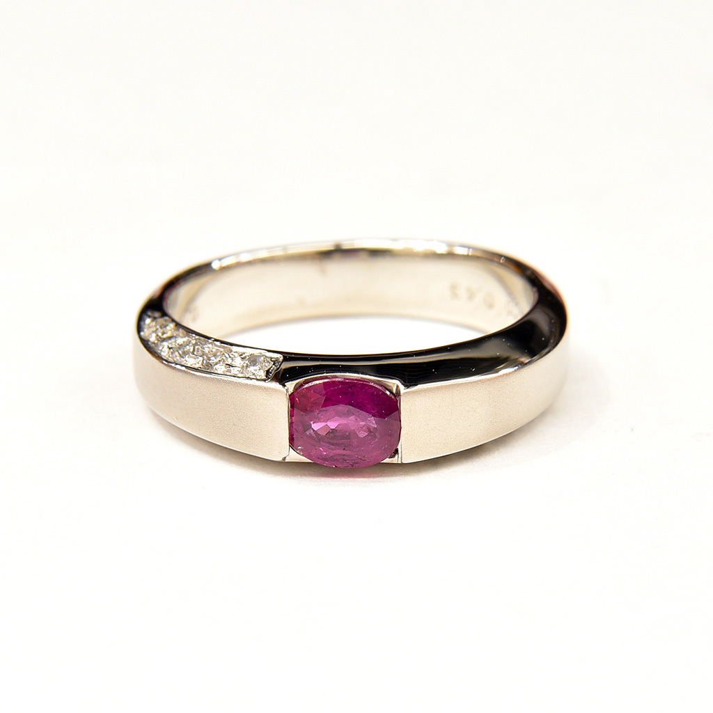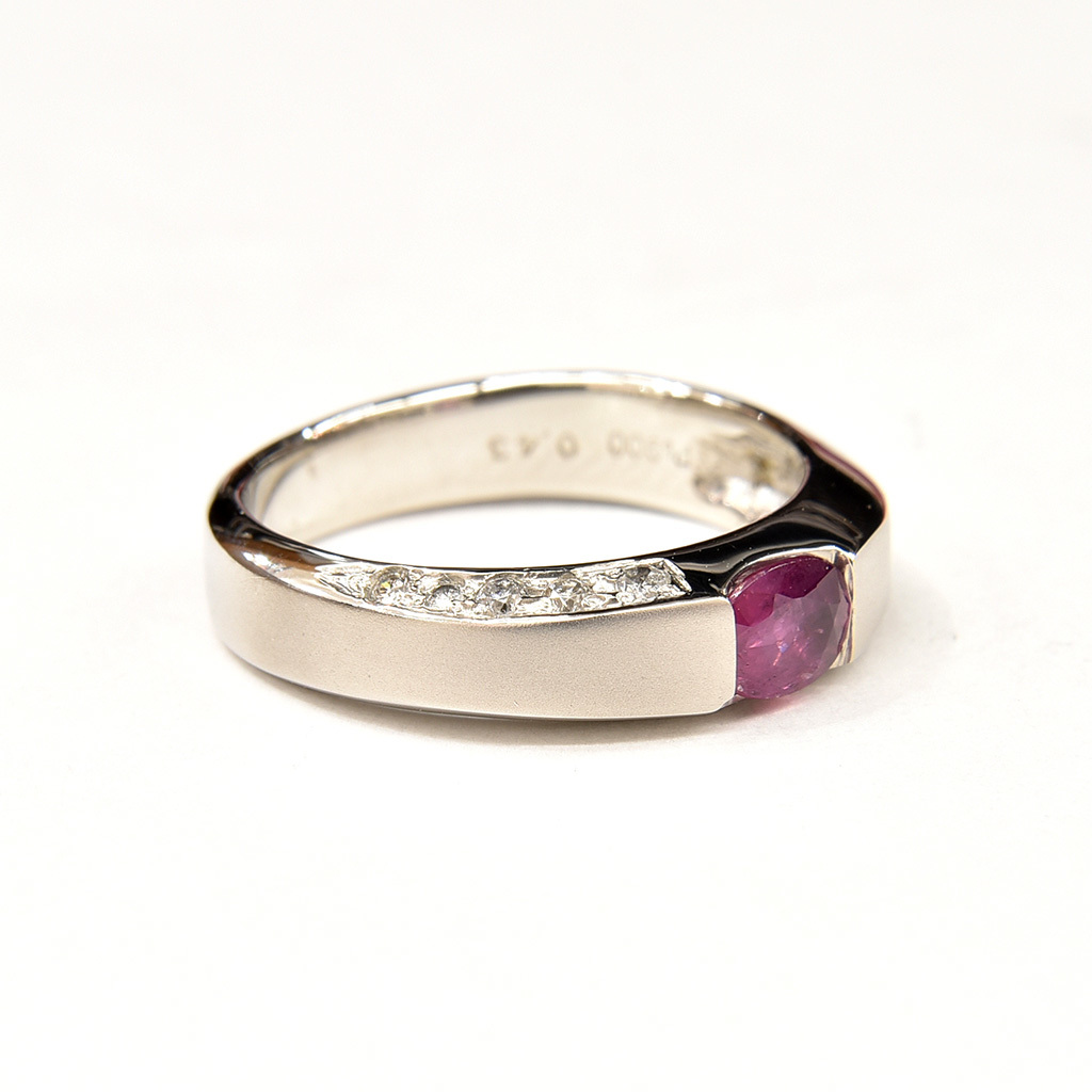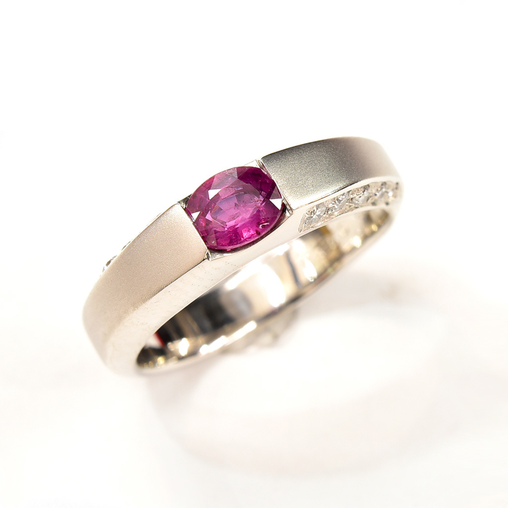 0.43ctのルビーを中心に対角線上に合計0.1ct(10石)のダイヤモンドをセットしました。