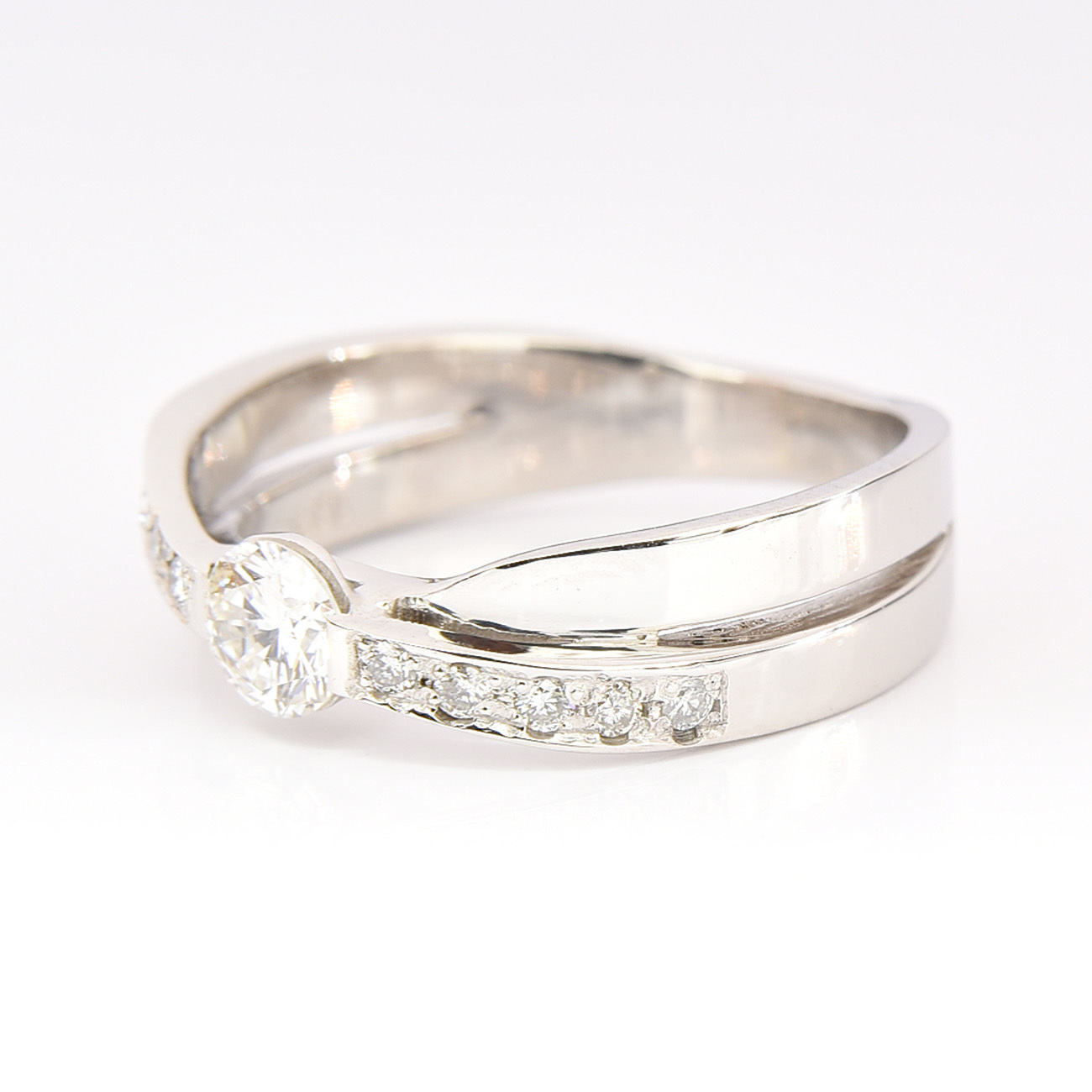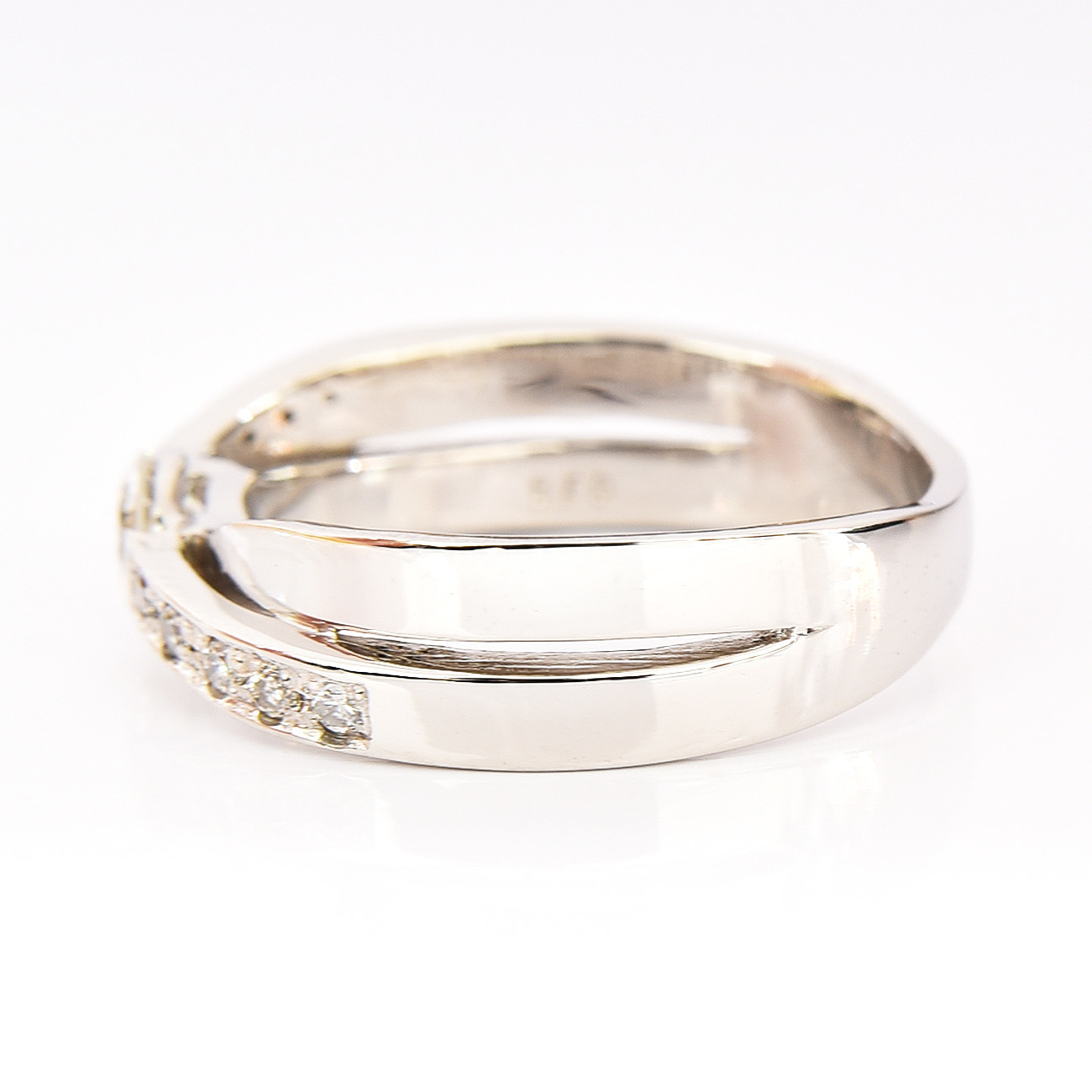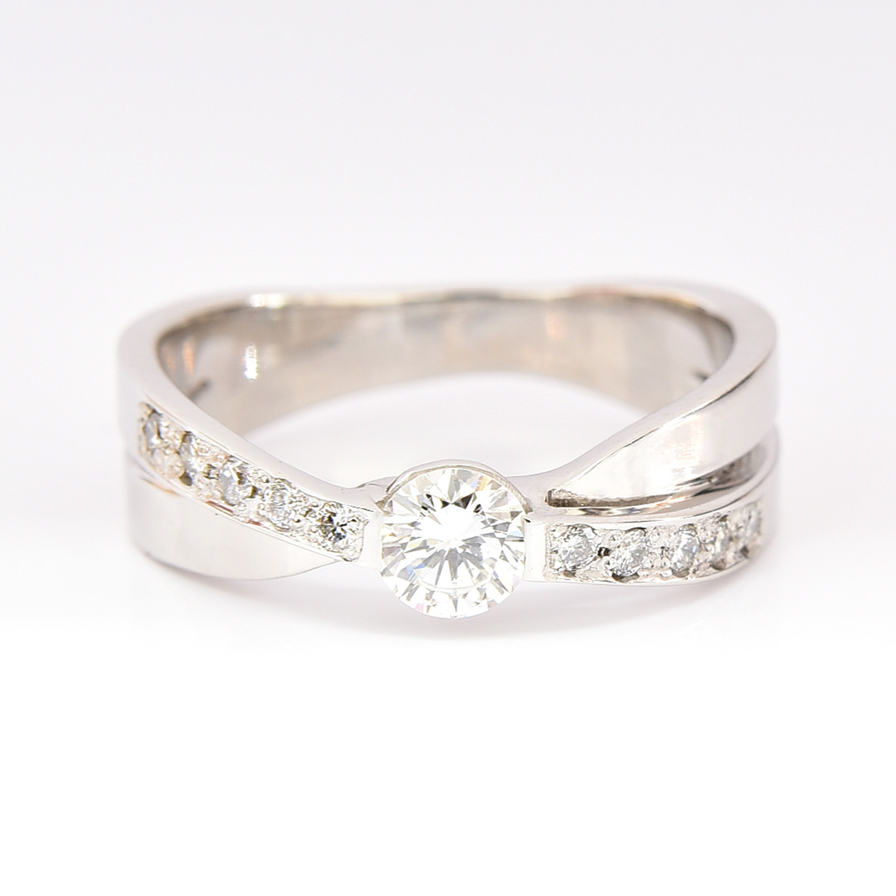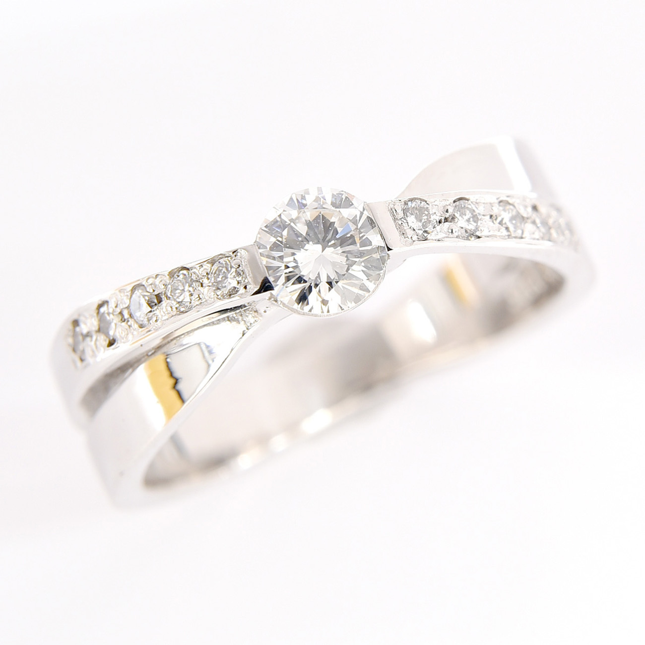 立体的に交差されたアームに10石(計0.13ct)のダイアモンドをセッティング。